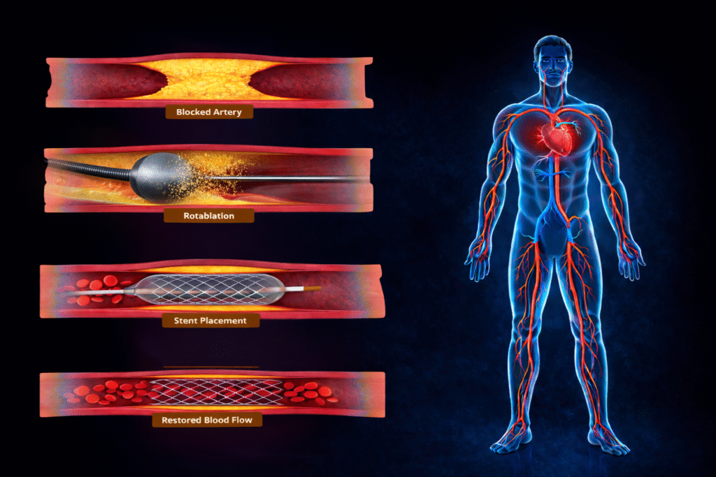 Specialized in Complex High-Risk Indicated (CHIP) Angioplasty for severe, calcified, multi-vessel, and high-risk coronary blockages.