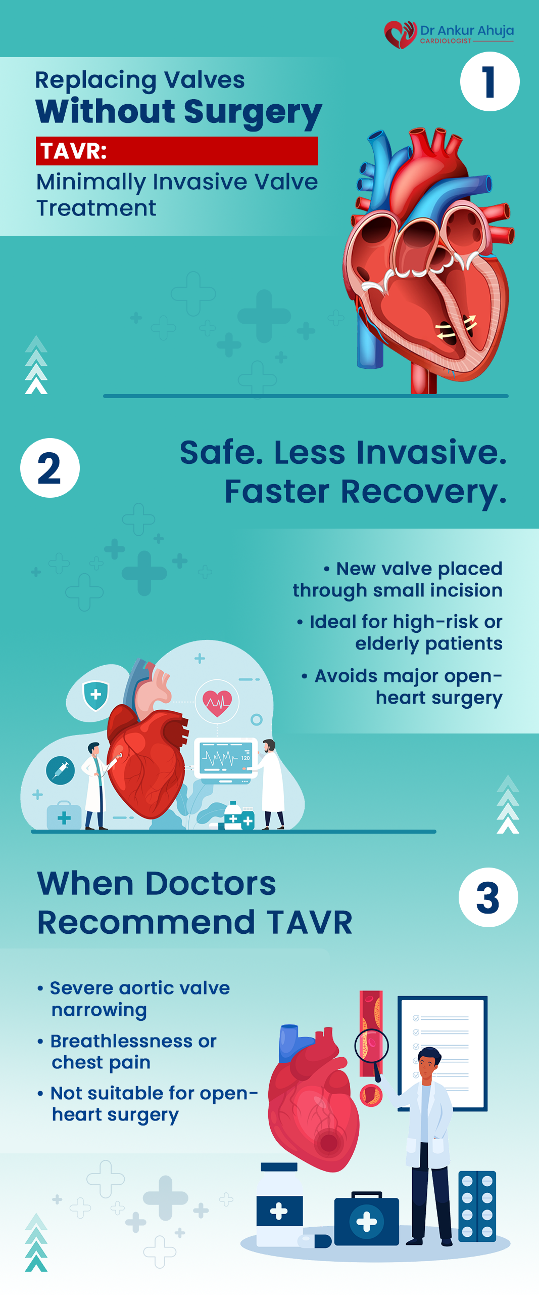 The large artery that transports blood from the heart to the rest of the body, the aorta, has bulging sections called aneurysms that can be fixed with minimally invasive procedures called EVAR and TEVAR. Aneurysms in the abdominal aorta are treated with EVAR, whereas those in the thoracic (chest) region are treated with TEVAR. In both procedures, a stent graft is inserted through a tiny incision in the groin and guided into place using a catheter. Once in position, the stent graft aids in strengthening the aorta’s weak spot and keeps it from rupturing. Under general anesthesia, the procedure usually takes one to two hours to complete. Imaging tests such as CT scans to map the aneurysm are part of the preparation process, and you might need to fast beforehand. Following the procedure, you will typically remain in the hospital for one to two days for monitoring. Despite the possibility of bleeding or infection, it is much less invasive than traditional surgery, which speeds up recovery. The majority of patients get better in a few weeks and are able to resume their regular activities. In order to help you manage your recuperation for the best result, Dr. Ahuja will carefully assess your condition and select the most effective technique to repair the aneurysm.